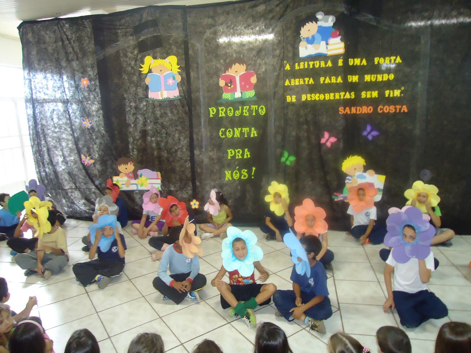 Nesse dia 10 de novembro, quinta-feira, no período da manhã e da tarde, aconteceu a segunda parte do projeto "Conta pra nós", envolvendo as turmas de 8ª, 7ª, 6ª série e 2º e 4ª ano da manhã e o Pré, 1º, 2º e 3º ano do período da tarde.